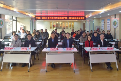 2026年1月6日,中国(湖南)援外医疗队现场救护第一目击者导师培训班(第五期)在湖南省人民医院举行开班仪式。湖南师范大学医学部党工委书记、主任祝益民,湖南省卫生健康委国际合作处二级调研员唐凌志、四级调研员尹胜利,湖南省人民医院副院长曹彦等出席开班仪式。即将出征非洲的中国(湖南)第23批援津巴布韦医疗队、第27批援塞拉利昂医疗队的30名队员参加培训。开班仪式由湖南省人民医院急救医学研究所主任陈芳主持。