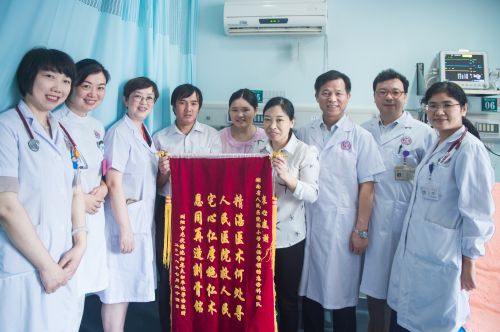 家属送锦旗“宅心仁厚施仁术,恩同再造刻骨铭”表达感谢。