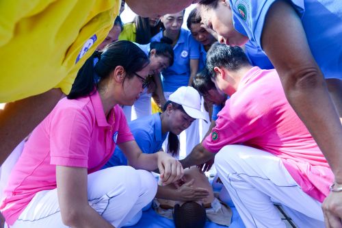 省医急救专家讲授并演示心肺复苏。