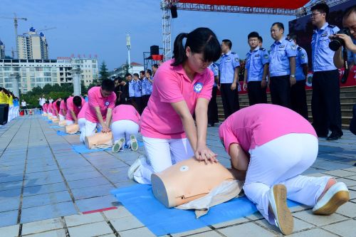 湖南省人民医院急诊二科主任张义雄现场演示心肺复苏的技术要领,再由医院志愿者对公安、消防、武警、学生、红十字会义工和社区居民等进行培训,大家争相在人体模型上练习,边学边纠正,学习兴趣盎然。