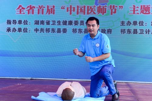 2018年9月5日,祁东县人民医院加入湖南省人民医院集团一周年庆典暨“健康湖南‘救'在身边”——现场救护第一目击者行动祁东站活动分别在县人民医院和县政府广场举行,祁东方言版“急救歌”首次发布,由祁东县人民医院医护人员和蓝天救援队志愿者、广场舞大妈、学生们表演的急救广场舞同时上演……
