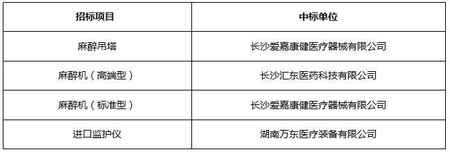2018年 12月11日,我院医学设备部在监审部的监督下,组织相关部门和专家举行招标会议,对各单位投标文件分别进行了综合评审,现将招标结果公示如下: