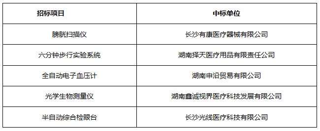2018年 12月28日,我院医学设备部在监审部的监督下,组织相关部门和专家举行招标会议,对各单位投标文件分别进行了综合评审,现将招标结果公示如下: