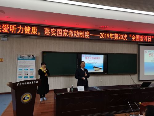 下午,肖旭平主任前往长沙市特殊教育学校,为该校老师进行“爱耳日里话爱耳”主题讲座,讲课内容包括:耳朵的结构和功能;儿童听力障碍的原因、类型、临床表现及防治;人工耳蜗的介绍等,受到老师们的欢迎。