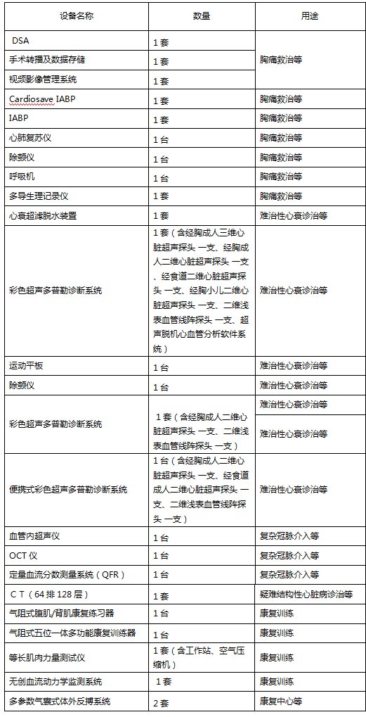 心血管中心疑难病症能力提升工程医疗设备2019年度购置清单
