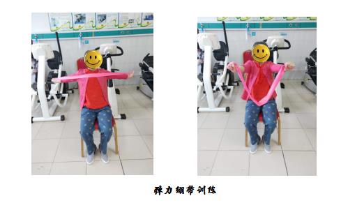 有效的胸廓扩张运动:在患者可耐受的范围内,借助弹力绷带进行有阻力的胸廓扩张活动。双手握弹力带(弹力带的长度比双臂长稍短),双臂平举;双臂展开,胸廓打开时吸气,双臂完全展开,吸气吸足量后,憋气2秒钟;再缓慢回收双臂,回收时呼气。保证吸气和呼气时间比为1:2,注意深吸慢呼。每天两次,每次约进行10-15次即可,切记不可过多。
