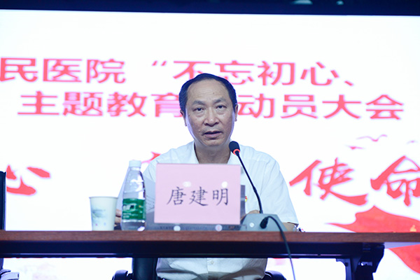 唐建明书记在动员报告中指出,要认识到开展“不忘初心、牢记使命”主题教育是用习近平新时代中国特色社会主义思想武装全党的迫切需要,是推进新时代党的建设的迫切需要,是保持党同人民群众血肉联系的迫切需要,是实现党的十九大确定的目标任务的迫切需要。要准确把握主题教育的根本任务,围绕深入学习贯彻习近平新时代中国特色社会主义思想,锤炼忠诚干净担当的政治品格,坚定信仰信念信心,准确把握主题教育“守初心、担使命、找差距、抓落实”的总要求,结合医院实际,达到理论学习有收获,思想政治受洗礼,干事创业敢担当,为民服务解难题,清正廉洁作表率,高质量完成好主题教育这一重大政治任务。