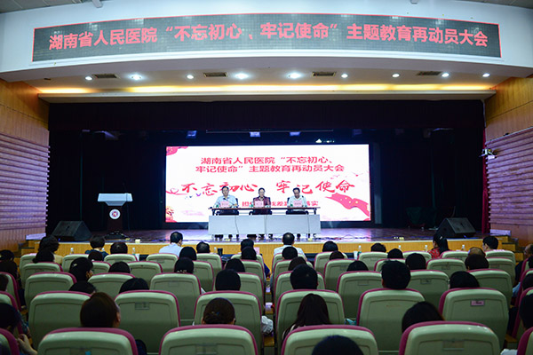 6月17日下午,湖南省人民医院召开“不忘初心、牢记使命”主题教育再动员大会。此次会议是认真学习贯彻中央“不忘初心、牢记使命”主题教育工作会议精神、习近平总书记重要讲话,领会省委、省委第十二巡回指导组及卫健委精神,按照省委的部署要求,对我院开展主题教育进行再动员。省委主题教育第十二巡回指导组副组长刘丹作指导讲话,我院党委书记唐建明作再动员讲话,院长李小松主持会议。省委主题教育第十二巡回指导组成员张顺华、我院全体院领导出席会议,各党总支、党支部委员、党员代表及护士长以上中层干部共500余人参加会议。
