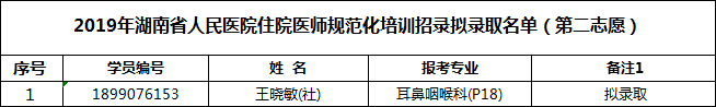2019年湖南省人民医院住院医师规范化培训招录拟录取名单(第二志愿)
