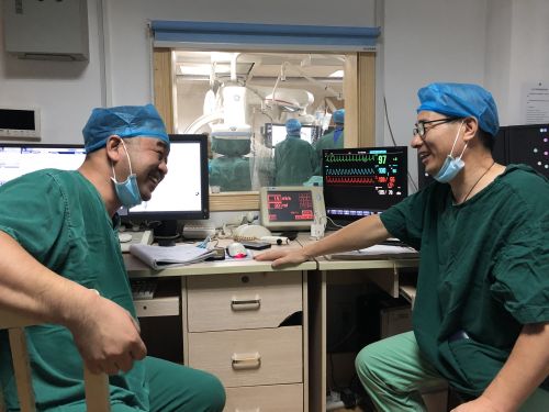 手术圆满结束,两位专家露出轻松的笑容。