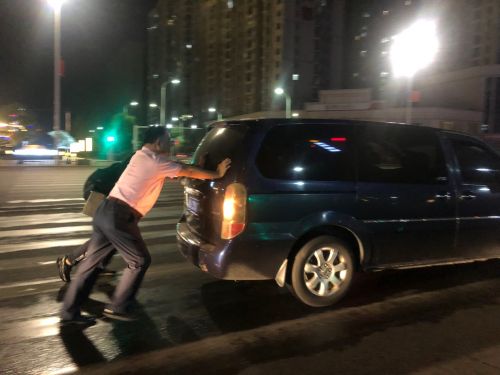 汽车抛锚,赶紧推到路边打的走。