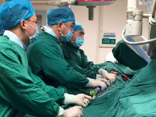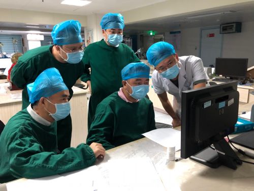 方案确定后,在麻醉科、介入手术室的配合下,向华副院长带领省人民医院介入血管外科刘觉仕主任、湘潭市中心医院介入血管外科康友根主任,共同为患者实施胸主动脉夹层腔内覆膜支架修复术,手术过程顺利。术后,现场紧张的气氛立即松缓下来,大家露出了会心的微笑。