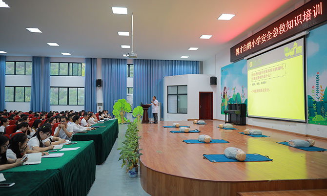 时间就是生命,发生意外突发事件,教师是一支不可忽视的现场救护“第一目击者”力量。9月23日晚,应博才白鹤小学邀请,湖南省人民医院派出15名医护人员为该校的200名教师进行了急救知识培训讲座及操作技能训练。