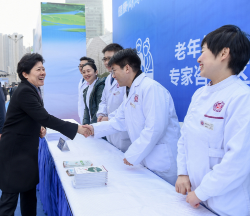 我院是15个重大专项行动之一的老年健康促进专项行动承办单位,同时负责启动仪式专项行动展板和3个咨询小屋的老年健康小屋现场咨询。院长李小松、副院长秦月兰,老年医学部、医务部、院办等负责人,老年健康相关专家和医师代表参加了启动仪式。