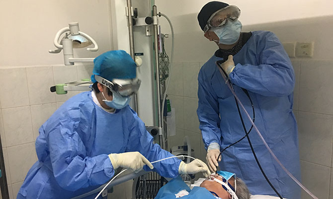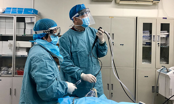 呼吸介入是高难度及高风险工作,对专业水平要求很高,为尽可能减少科室医务人员在呼吸内镜诊疗中感染的危险,刘志光置个人安危于度外,承担了绝大部分的呼吸内镜及介入诊疗工作。甚至在父亲因病重入住呼吸重症病房的情况下,仍一心扑在工作中!同时在他的带领下,邓红英、柳威、彭冉等介入骨干积极参与,成为省内最早复工开展介入诊断及治疗最多的呼吸内镜中心。(呼吸与危重症医学科通讯员 王泽强)