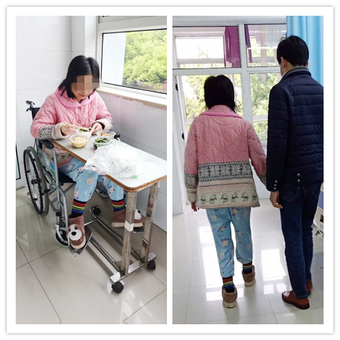 通过治疗和康复训练,目前患者可以独立行走和进食,生活能自理