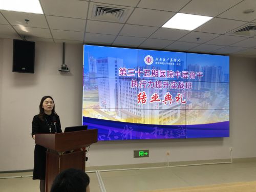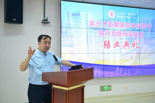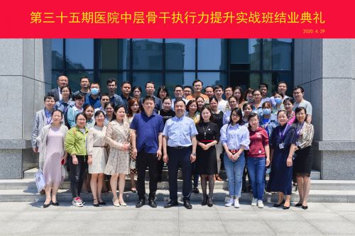 4月29日上午,我院第三十五期医院中层骨干执行力提升实战班结业典礼在岳麓山院区会议室举行。副院长向华出席典礼,社会医学部部长禹艳群主持典礼,社会医学部、岳麓山院区相关临床科主任及职能部门主任、第35期医院中层骨干执行力提升实战班共42名学员参加结业典礼。
