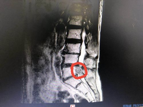 术前增强磁共振检查显示:l45椎间盘脱出游离髓核组织。