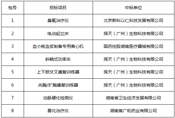 2020年 5月26日,我院医学设备部在监审部的监督下,组织相关部门和专家举行招标会议,对各单位投标文件分别进行了综合评审,现将招标结果公示如下: