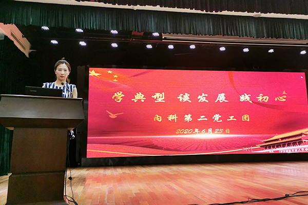 2020年6月13日晚,内二党工团在综合楼二楼大礼堂召开了“学典型、谈发展、践初心”的专题学习报告会。大会由内二党总支书记孟飞组织,内二全体党员、分工会委员、工会小组长及团小组长、团员代表共约150人参加,内二分工会主席郭纯担任会议主持。