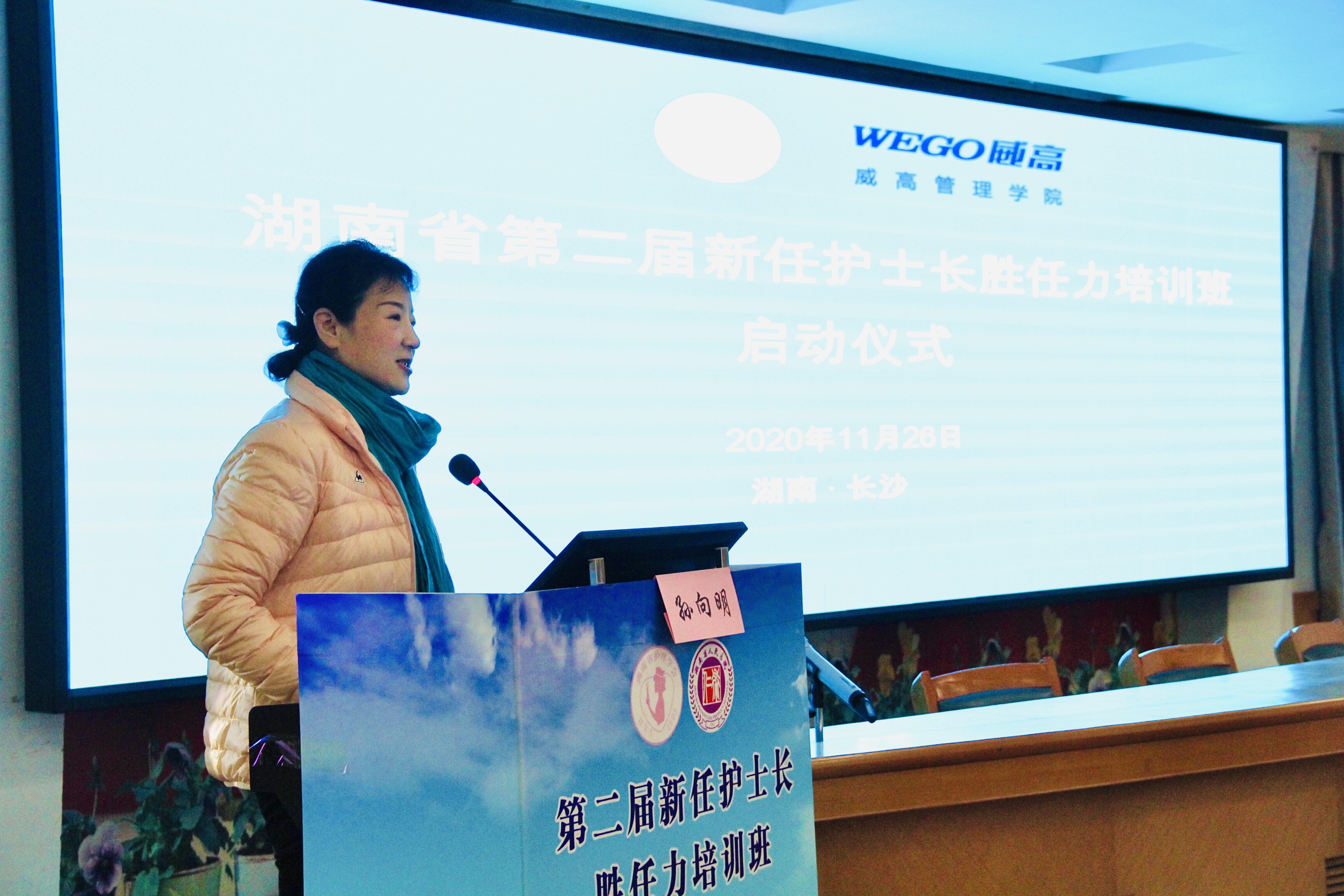 为进一步科学、规范、有效地提升新任护士长胜任力,培养护理管理人才,11月25日—29日,由湖南省护理学会、湖南省人民医院、威高管理大学联合举办的第二届新任护士长胜任力培训班在马王堆院区成功举办。湖南省护理学会理事长孙向明、威高大学院长助理李灿堂、威高集团湖南区经理宋修会、我院副院长秦月兰、湖南省护理学会秘书长黄艳萍以及来自省内外多家医院的护理管理者、新任护士长、护理骨干共100余人出席了开班仪式,湖南省护理学会护理管理专业委员会秘书姚小玲主持开班式。