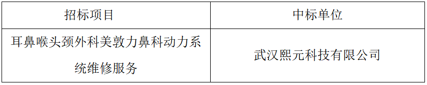 2020 年12月 1日,我院医学设备部在监审部的监督下,组织相关部门和专家举行招标会议,对各单位投标文件分别进行了综合评审,现将招标结果公示如下: