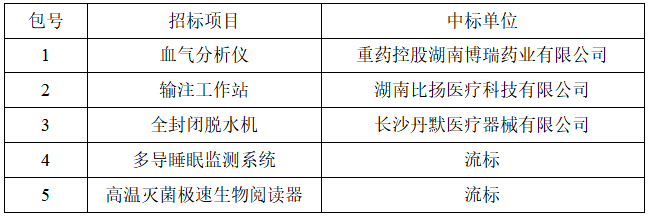 湖南省人民医院血气生化分析仪等医疗设备采购项目招标结果公示