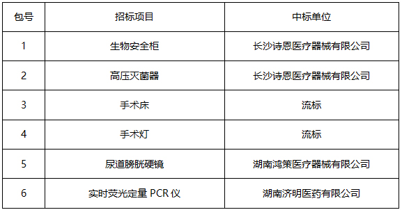 湖南省人民医院生物安全柜等医疗设备采购项目的招标结果公示