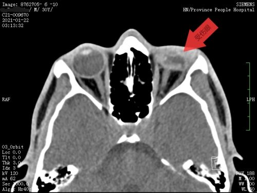 患者眼眶ct显示,左眼球塌陷、变小,眼内结构紊乱。
