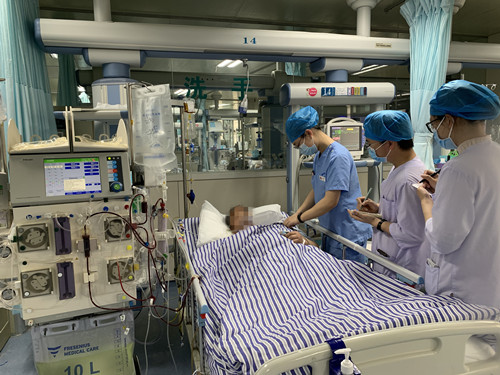 入院后完善检查发现,彭爷爷已经出现了肝衰竭,损害程度严重,正常人的谷草转氨酶是13~35U/L,谷丙转氨酶是7~40U/L,彭爷爷的谷草转氨酶经超过9000U/L,谷丙转氨酶已超过6000U/L,同时伴有肾功能损伤和心肌损伤,诊断为鱼胆中毒、急性肝衰竭、急性肾损伤。由于鱼胆中毒没有特效解毒药,需紧急床旁血液净化。重症医学科医护团队紧密协作,立即为彭爷爷建立血滤置管通路,进行床旁血液灌流治疗,清除进入血循环的毒素,同时给予护肝、利尿、补液、改善代谢、营养支持等治疗4天,最终彭爷爷化险为夷,脱离生命危险,病情趋稳,经过康复,于2月24日出院了。