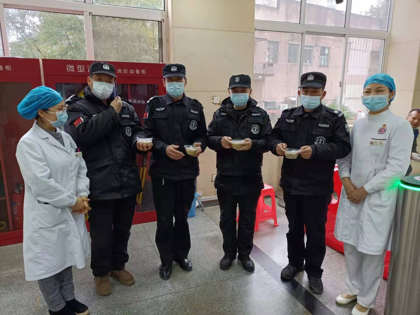在常态化防疫的的要求下,各楼栋的都设置了疫情防控道闸系统,保安每天都在道闸系统处值守。今日,内分泌二科赵新兰主任和李柳护士长带着一碗碗热腾腾的元宵送给在中康楼道闸处值守的保安,保安纷纷表示心里暖暖的,驱散了降温带来的寒气。讲人文是我院的发展理念,小小元宵送来的是一份小小吃食,也是一份真切的关怀,让大家在认真工作之余也体会了节日的乐趣。(内分泌二科)