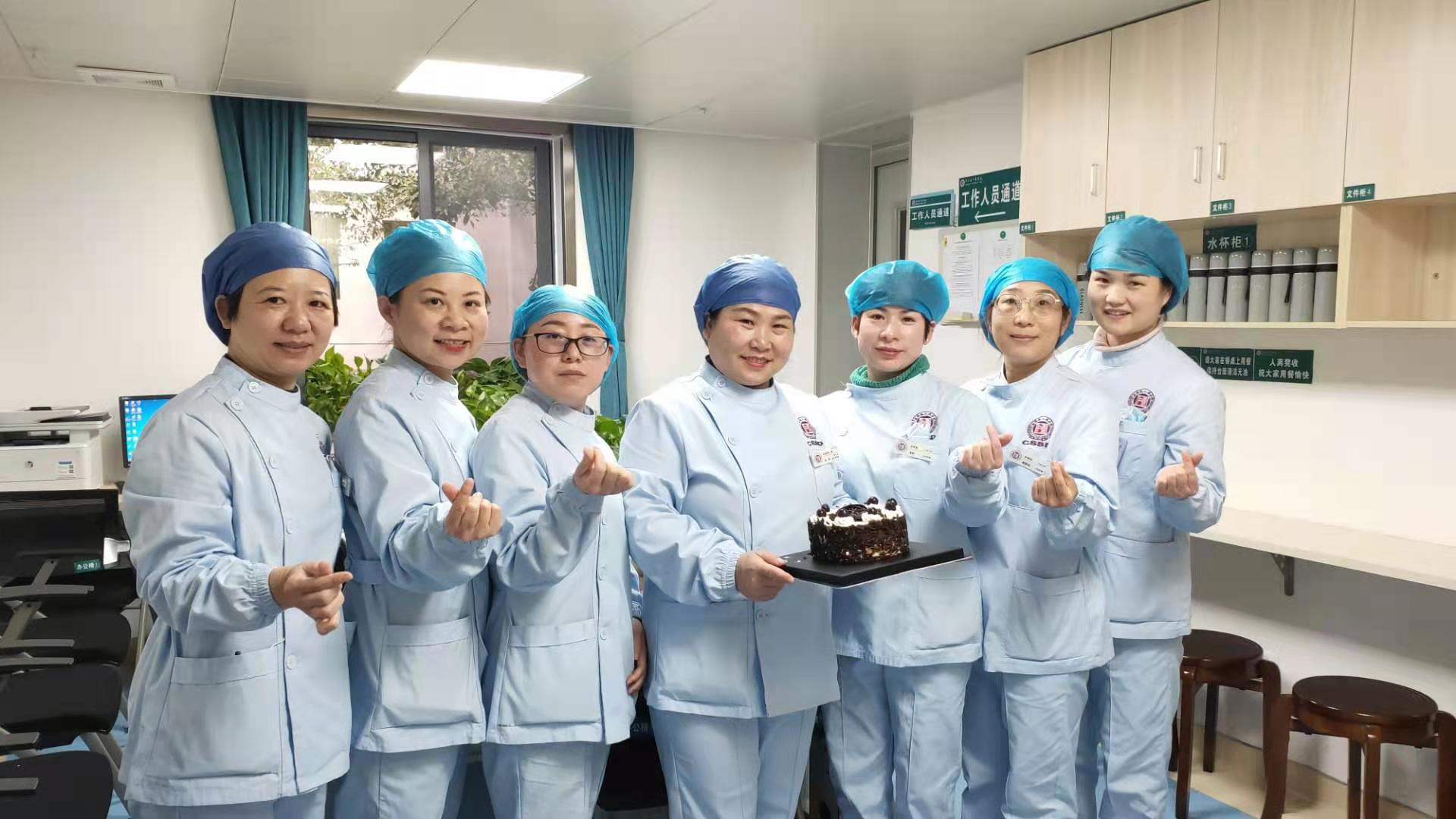 为庆祝“三·八”女神节,消毒供应二部生活委员李萍专门购置了一个蛋糕与同事们一起分享,大家围坐在一起,边话家常边尽情分享并品尝着甜甜的蛋糕,共享这份节日的欢乐。“祝女神越来越美丽!”“祝大家伙心想事成!”“祝平安喜乐,顺遂如意……”大家你一言我一语地表达着祝福,一颦一笑间洋溢着幸福欢乐。
