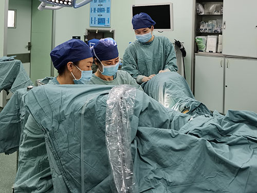 为了摆脱困扰,4个月前,刘女士来到湖南省人民医院天心阁院区妇科盆底专科门诊就诊。王静云副主任医师详细询问病史后,给她做了进一步检查,看到患者私密处皮肤泛红、内裤潮湿,用力咳嗽时尿液喷射而出,考虑为“压力性尿失禁”,收入妇科病房治疗。妇科主任黄薇及王静云副主任医师等对刘女士的病情进行讨论后,制定了手术方案——耻骨后经阴道无张力尿道中段悬吊术。