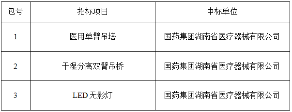 湖南省人民医院(湖南师范大学附属第一医院)医用单臂吊塔等医疗设备采购项目招标结果公示