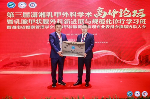 2021年4月23日至24日,2021第三届潇湘乳甲外科学术高峰论坛、暨乳腺甲状腺外科新进展与规范化诊疗培训班暨湖南省健康管理学会乳腺甲状腺健康管理专业委员会换届选举、肉芽肿性小叶性乳腺炎诊治湖南专家共识首次讨论会大会在长沙召开。本次会议由湖南省健康管理学会主办,湖南省健康管理学会乳腺甲状腺健康管理专业委员会、湖南省人民医院乳甲外科、湖南乳甲外科联盟联合承办。