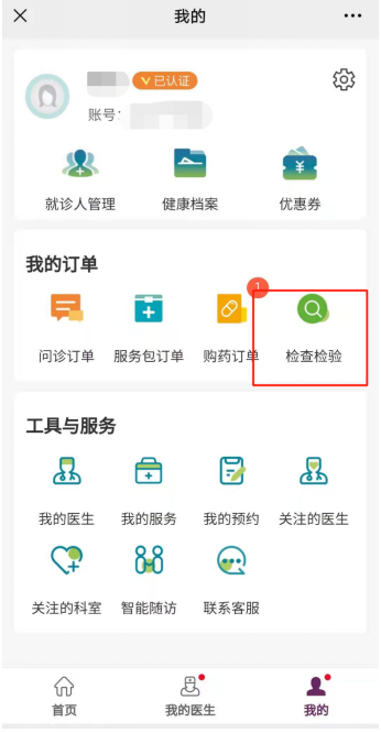 进入“湖南省人民医院互联网医院”—— 选择“我的”——选择“检查检验”