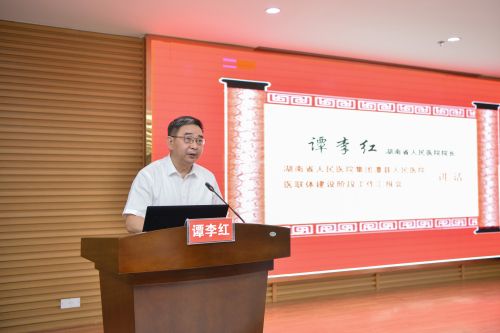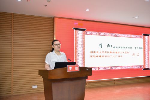 澧县人民医院党委书记胡礼虹作“医联体建设阶段工作汇报”。