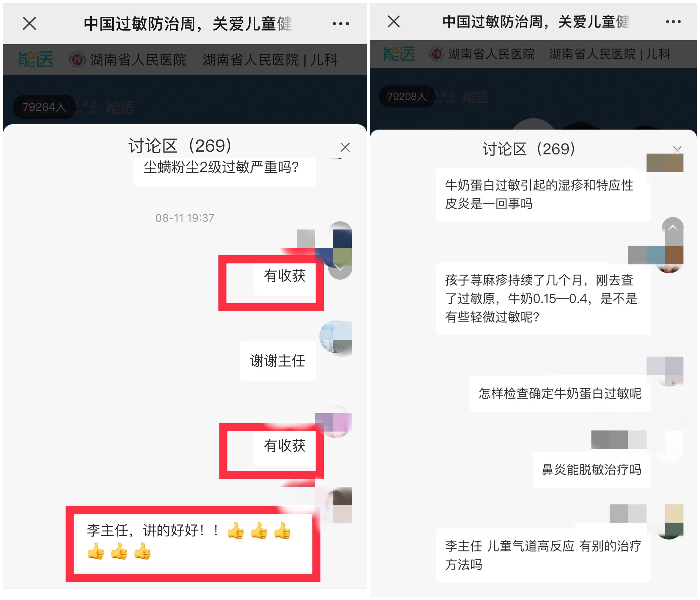 线上科普活动可以让更多的受众者参与,惠及广大公众;本次直播活动得到了许多家长朋友的热烈支持与回应,线上直播观看人数达到7.9万人次,点赞量达1.5万人次。很多家长纷纷留言表示收获颇多,不仅能够学习到儿童过敏疾病的相关知识,也懂得了让孩子们如何有效规避过敏,健康快乐成长。(儿童呼吸介入科 毛文娟 杨图宏)