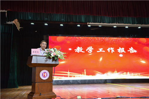 谭李红院长在会上教学工作报告,在过去的一年中,医院教学管理体系日趋完善,出台了《教学秘书管理办法》、《住院医师规范化培训与专科医师培训管理规定》等一系列规章制度;加强了师资队伍建设,进一步提高了师资队伍能力水平;改善了教学和配套设施条件,推进岳麓山院区模拟培训中心建设,医院拨付数百万元对学生宿舍进行了提质改造;涌现了一批优秀教学成果,急诊与重症医学教研室的《第一目击者现场急救》获得湖南省2020年一流本科课程,实现了此前零的突破;获得湖南省优秀全科培训基地和优秀全科考核基地等。谭李红院长提出,医为教之基,教为医之翼,医院的价值不仅仅体现为“治病救人”,更体现为“教书育人”。教学工作是一项常抓不懈、任重道远的工作,医、教、研同步发展是打造一流的三甲医院的必经之路,希望全体教职医务人员能弘扬师德师风,做好学生的引路人。