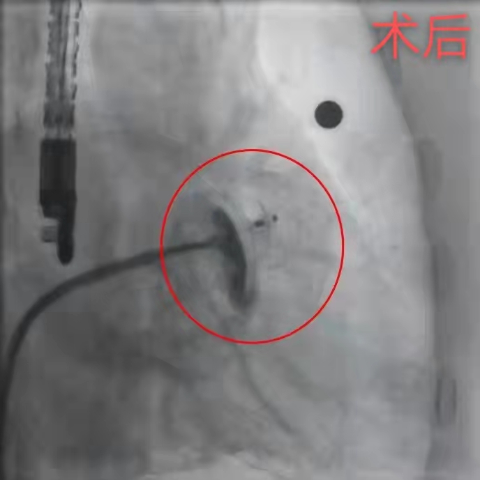 封堵术后造影显示左心耳内无分流