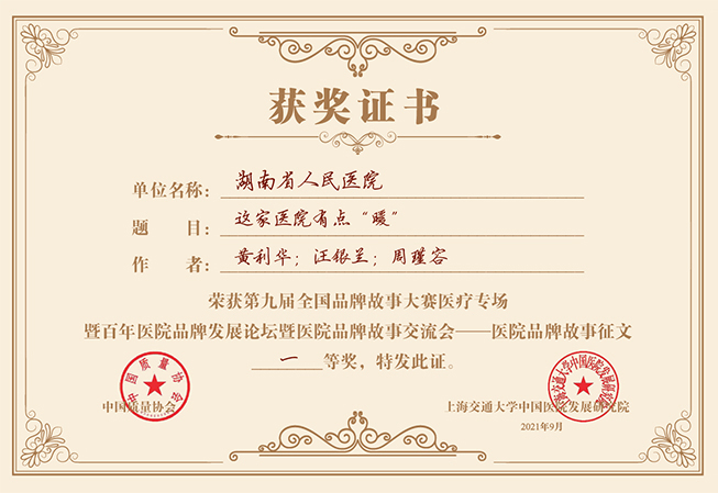 由宣传办选送的《这家医院有点“暖”》荣获第九届全国品牌故事大赛医疗专场暨百年医院品牌发展论坛暨医院品牌故事交流会“医院品牌故事征文”一等奖,医务部张琪分享的《贺妈妈和她宝贝们的故事》荣获“医院品牌故事演讲”二等奖。