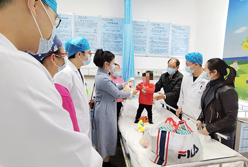为解决其家庭的经济困难,科室为她减免了上万元手术费用;段燚星主任和高海华护士长带领医护人员为她捐献玩具、衣物,还给她买来玩偶和零食。