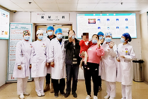 5 出院前,一家三口和泌尿三科医护人员合影留念。