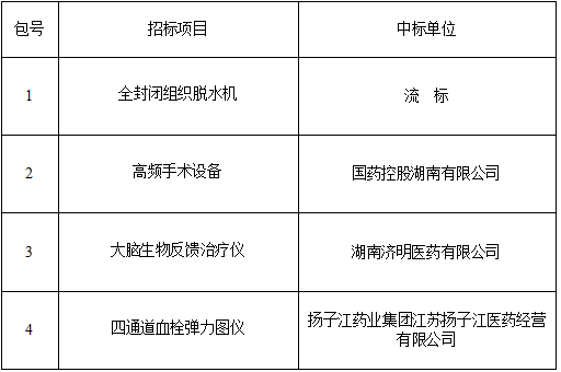2021年10月20日,我院医学设备部在监审部的监督下,组织相关部门和专家举行招标会议,对各单位投标文件分别进行了评审,现将招标结果公示如下: