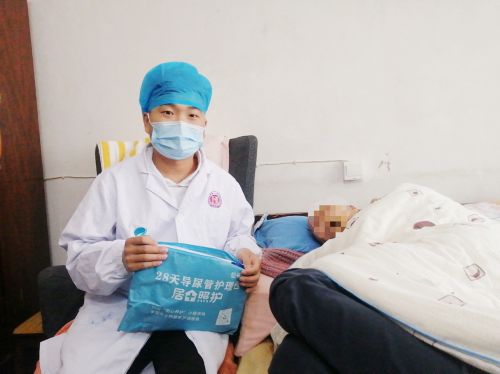 98岁高龄的杨爷爷家住长沙市雨花区,因脑梗瘫痪在床,行动十分不便。2个月前,老人因“前列腺增生合并感染”,在医院放置了导尿管。原本一个月后要去医院更换新的导尿管,但因疫情原因,家属不敢带老人前往医院,于是登录“湖南省人民医院互联网医院”的微信小程序,在工作人员指导下成功“下单”预约了专科护士上门服务。
