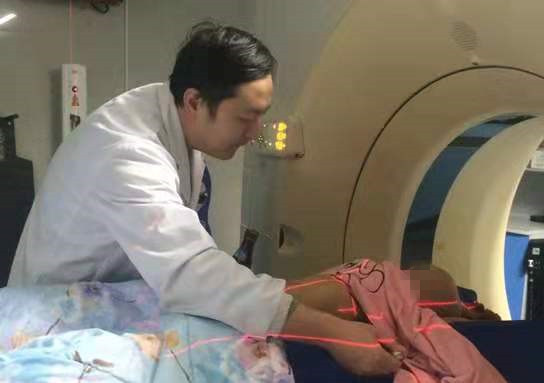 邓坦副主任医师为1岁患儿进行放疗定位