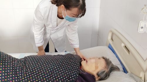 拔管后,通过腹部触诊、询问感受来判断老人综合情况。