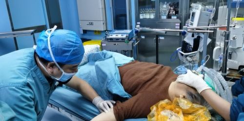 麻醉三科刘际童主任进行气管插管及深静脉置管,维持患者术中生命体征。