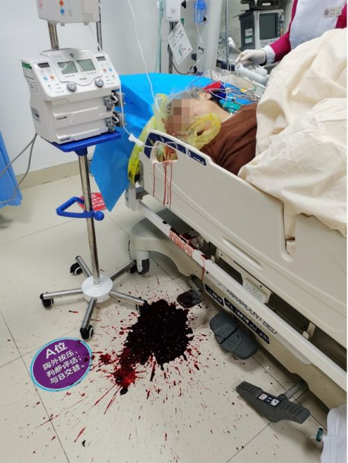 抢救过程中,老人多次呕出鲜红色血液约300ml,便血约200ml,感觉心悸、头晕,随后呼之不应,血压跌至45/20mmHg、心率118次/分,处于休克状态,随时有生命危险。抢救人员立即对其进行升血压、止血、输血以及建立静脉通路补液等治疗,以稳定生命体征。