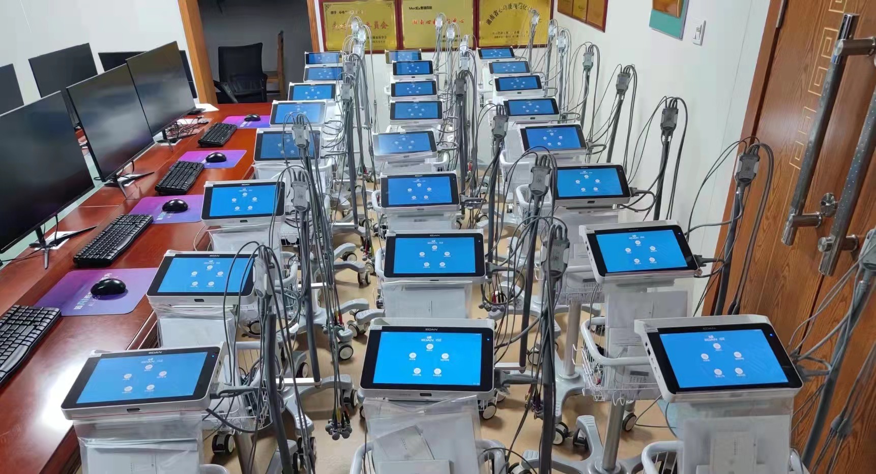 随着医疗建设数字化、信息化发展,我院心电网络系统的提质也迫在眉睫,主要体现在心电网络终端设备的更新换代及心电网络的充分利用,最终实现心电数据全院数字化。在院领导的关心与支持下,马王堆院区为每个护理单元配备了功能强大的智能互联网心电图机,使心电网络系统如虎添翼。